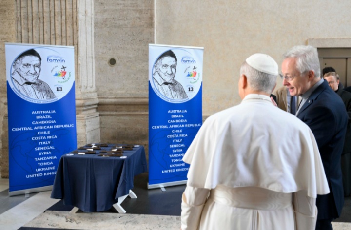 Antes de la Santa Misa, el Papa León XIV se reunió con diversas personas comprometidas en la atención a los más necesitados. Entre ellos estuvo el padre Tomaz Mavrič, C.M., superior general de la Congregación de la Misión, quien presentó al Santo Padre las llaves simbólicas del proyecto “13 Casas”, una iniciativa inspirada por la Familia Vicentina.