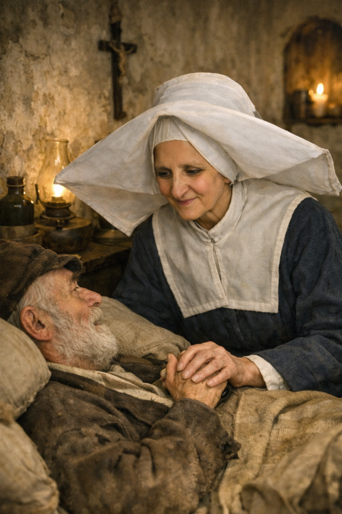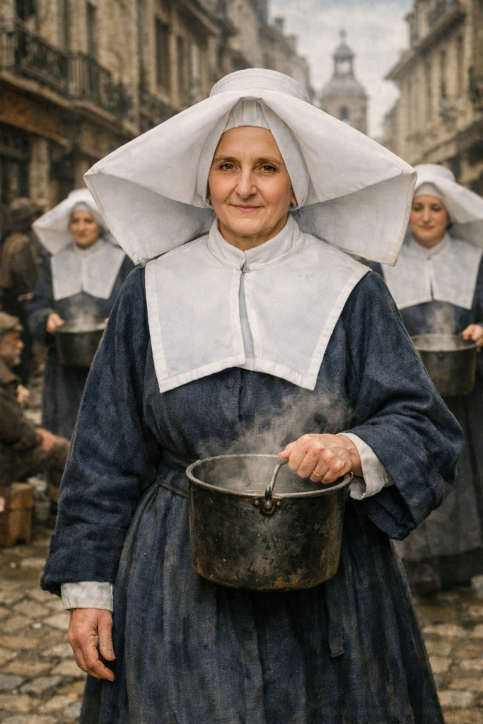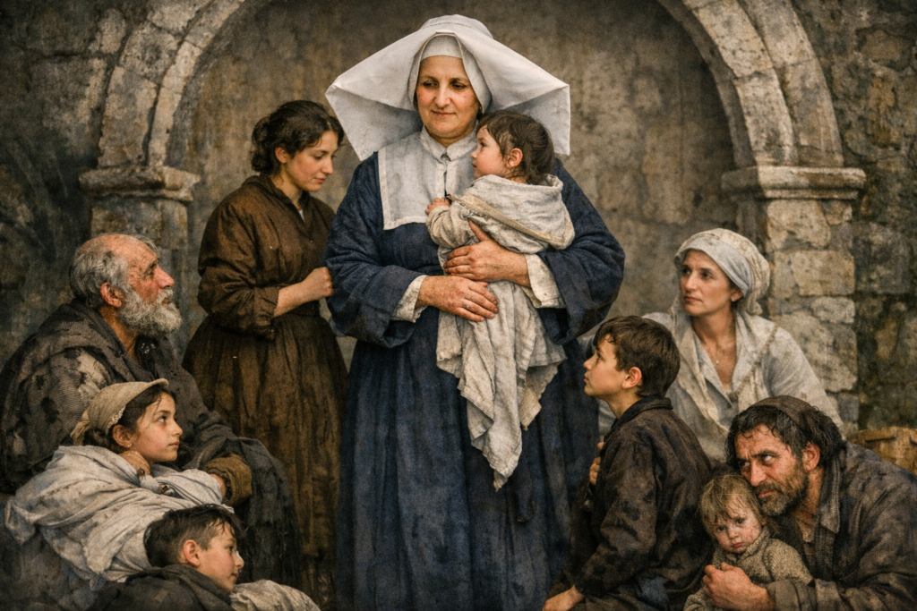 Sor Rosalía Rendu nació el 9 de septiembre de 1786 en Confort (Saboya, entonces Francia), en el seno de una familia campesina católica. Era la mayor de cuatro hermanas y creció en plena Revolución Francesa, cuando sus padres acogían en su hogar a sacerdotes refractarios que rechazaban la Constitución Civil del Clero . En aquel ambiente de fe y persecución aprendió muy pronto la piedad: incluso recibió la Primera Comunión en casa por no haber capilla abierta . Con sólo 15 años, en 1802, ingresó en la Compañía de las Hijas de la Caridad de San Vicente de Paúl en París . Después de su formación, tomó el nombre de Sor Rosalía y fue destinada al empobrecido barrio de Mouffetard, al sur de París, donde serviría a los necesitados durante 54 años . En 1807 emitió sus votos como Hija de la Caridad, entregándose totalmente al servicio de Dios y de los pobres.